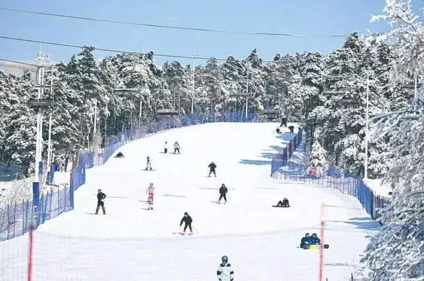 游客们在天定山滑雪场滑雪。图源:长春日报