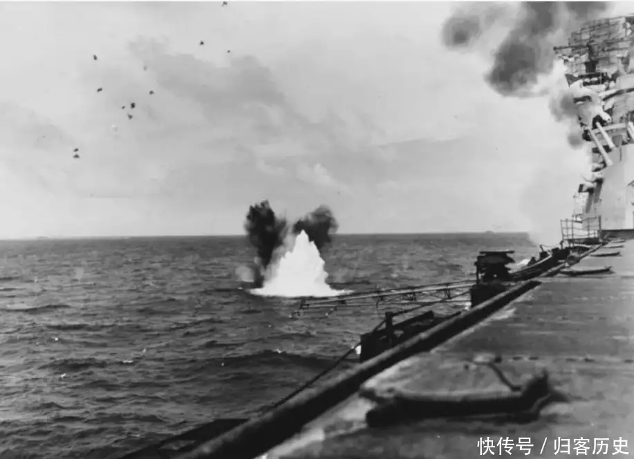 老布什看到炸弹击中目标后,迅速驾驶飞机离开父岛,向海面行驶。