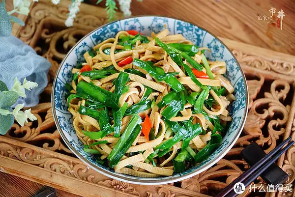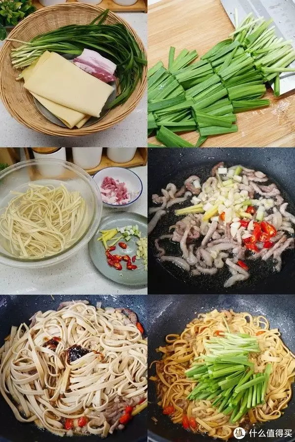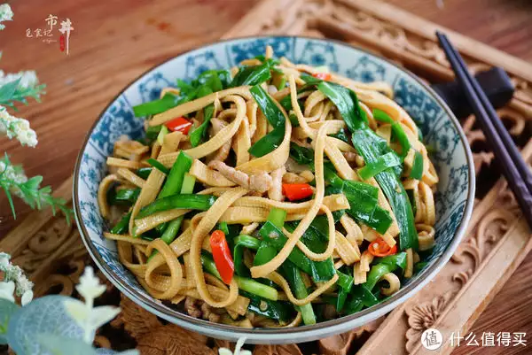 【主料】:韭菜半斤,千张(豆腐皮)2张