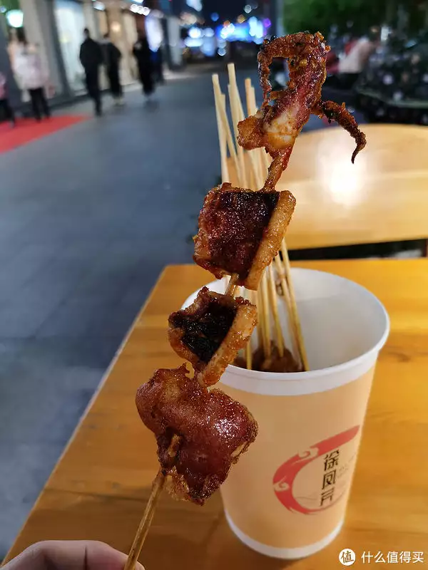 去了美食步行街上,露天的一家店,有酸辣粉还有炸串,性价比还蛮高的。