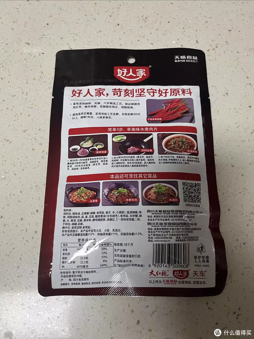 这款好人家水煮肉片调料里边有三款小料包,分别是调料包干料包以及腌肉包。