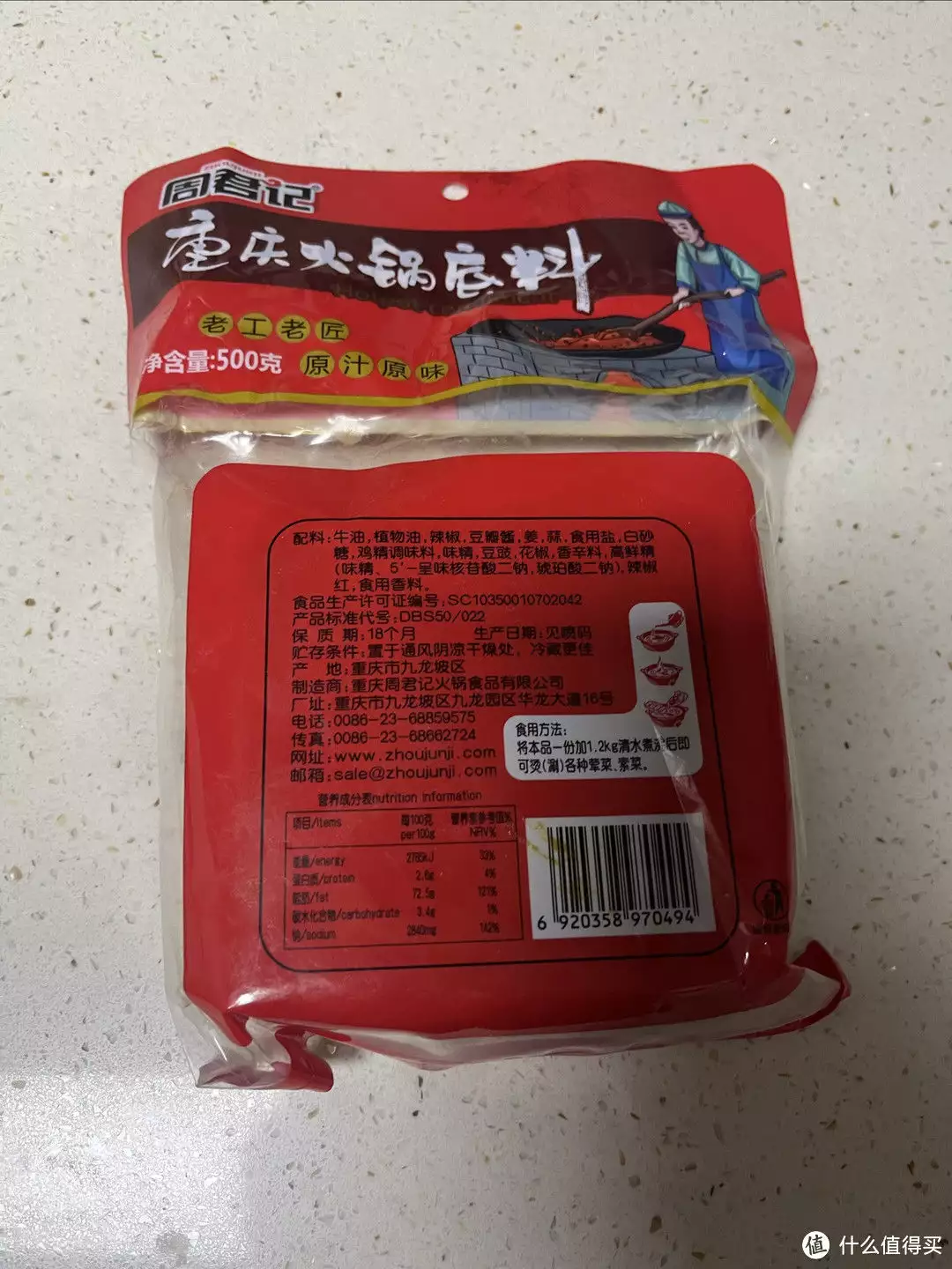 这第一款美食就是重庆火锅底料一袋是500g。而且它是纯手工调料,原汁原味,味道可以自己选择,我选的是轻微辣的,如果大家喜欢吃麻辣的话,选麻辣的也行。火锅调料采用的是原汁原味的牛油作为主料。辣椒,香叶等一系列的香辛料作为它的调料,往里面加一点肉,加一点菜,真的非常好吃,而且一块儿调料的价格也不贵,推荐购买。