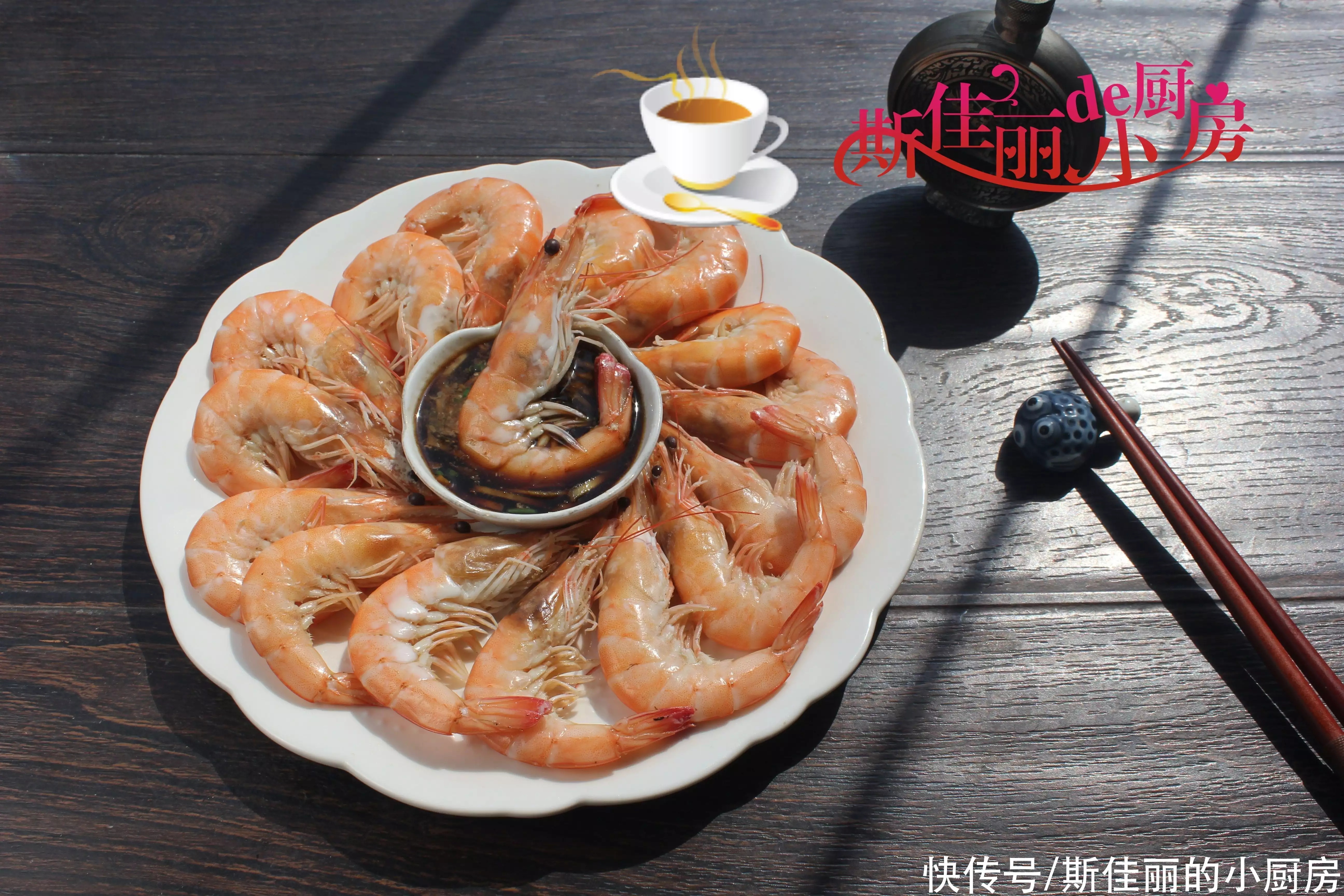 7. 将味碟随着焯好的大虾一起上桌即可。