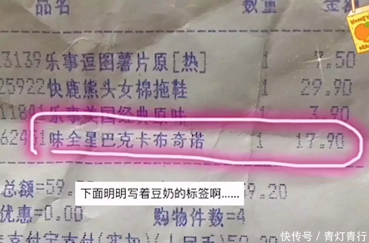 “竟然在同一个地方跌倒两次,这位小姐姐也太粗心了。而且第一次买的时候标签上写得很清楚,的确是炭烧豆奶的价格呀。”