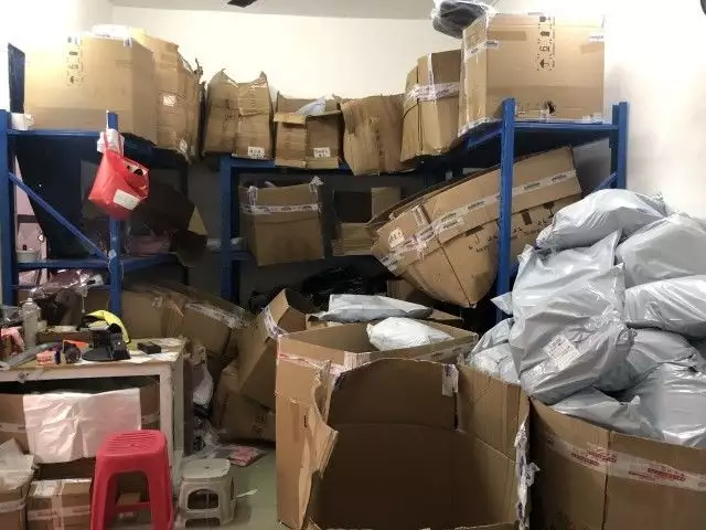 澎湃新闻实地探访发现,上述网店“藏”在天河区渔沙坦村一处自建房内,这里是天河区的郊区,周围有一些小公司、小厂。一栋老房子的一楼系该公司的仓库,旁边一栋自建房2-5层的右侧房间亦被其租下,被用作仓库、办公场所、住宿等。房东透露,该公司老板于2020年上半年从他手上租房,每月租金2500元,“每天快递包裹很多”。因外墙未悬挂公司招牌,从外面看,这里跟普通民居差不多,看不出有公司在里面从事非法经营活动。