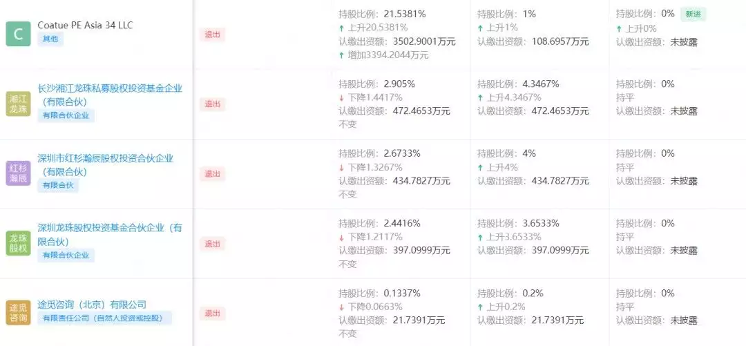 图源:天眼查 红杉中国、美团龙珠退出股东行列