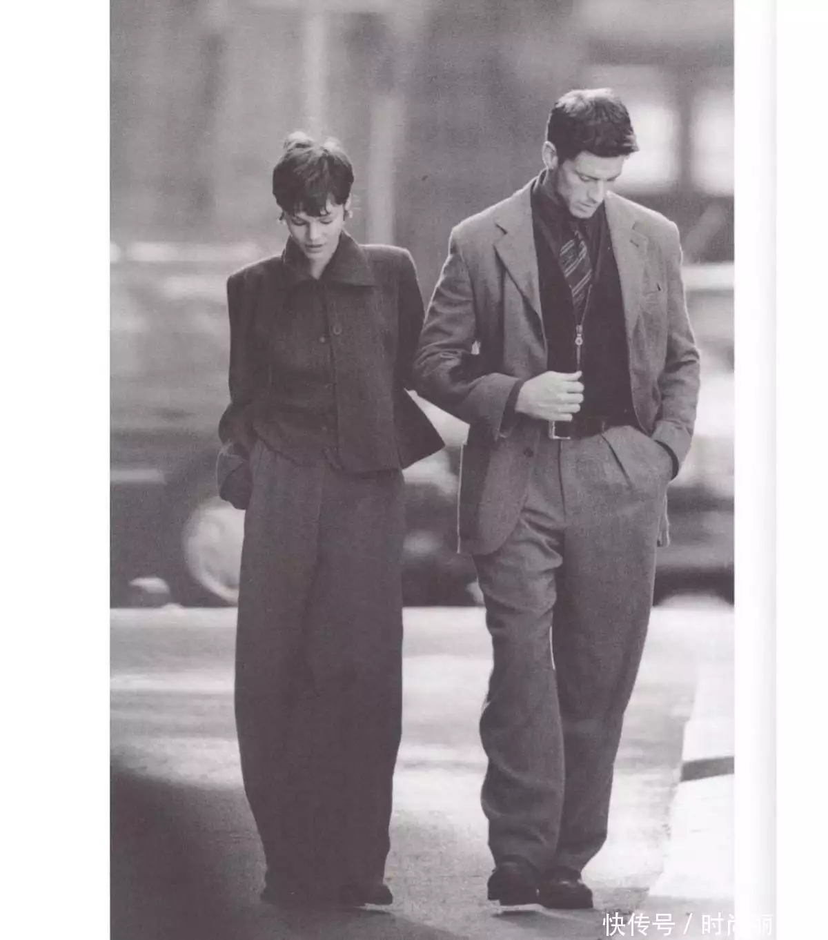 那个时候不管男女,最火的穿搭方式应该就是西装+阔腿裤的造型了,裤子选择低腰和宽松的版型,裤脚也不会正好卡在脚踝的部分,而是自然堆积在鞋面上。