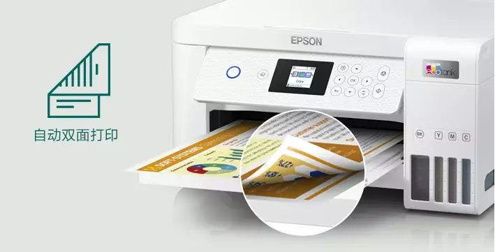 爱普生墨仓式®L4266彩色无线多功能一体机在标配满容墨水状态下A4黑白打印可达7500张,A4彩色打印也多达6000张。此外,该一体机还可支持自动双面打印,整个打印过程无需手动翻面。