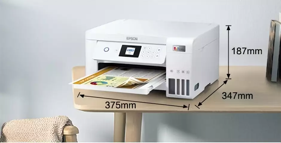 外观方面,爱普生墨仓式®L4266彩色无线多功能一体机小巧、简约,机身整体尺寸仅375mm×187mm×347mm,只比A4打印纸稍大一些,无论是放置在客厅茶几上还是书桌上都不会占据太多的空间,便于安放在使用最趁手的位置。