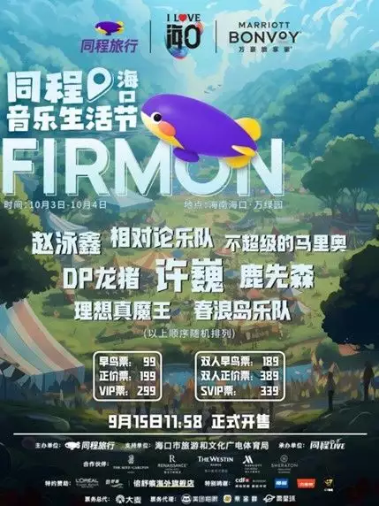 核心提示:2023年9月13日,同程旅行宣布将于10月3日至4日在海南海口举办海口同程音乐生活节。本次音乐生活节将于15日正式开票,许巍、赵泳鑫、鹿先森等明星加盟。现场设有各类餐饮美