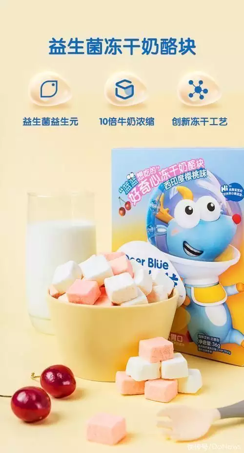 以小鹿蓝蓝的酸奶块和溶豆产品为例,之前市面上大多采取烘烤工艺,但小鹿蓝蓝则采取了冻干工艺,让风味保持更持久。