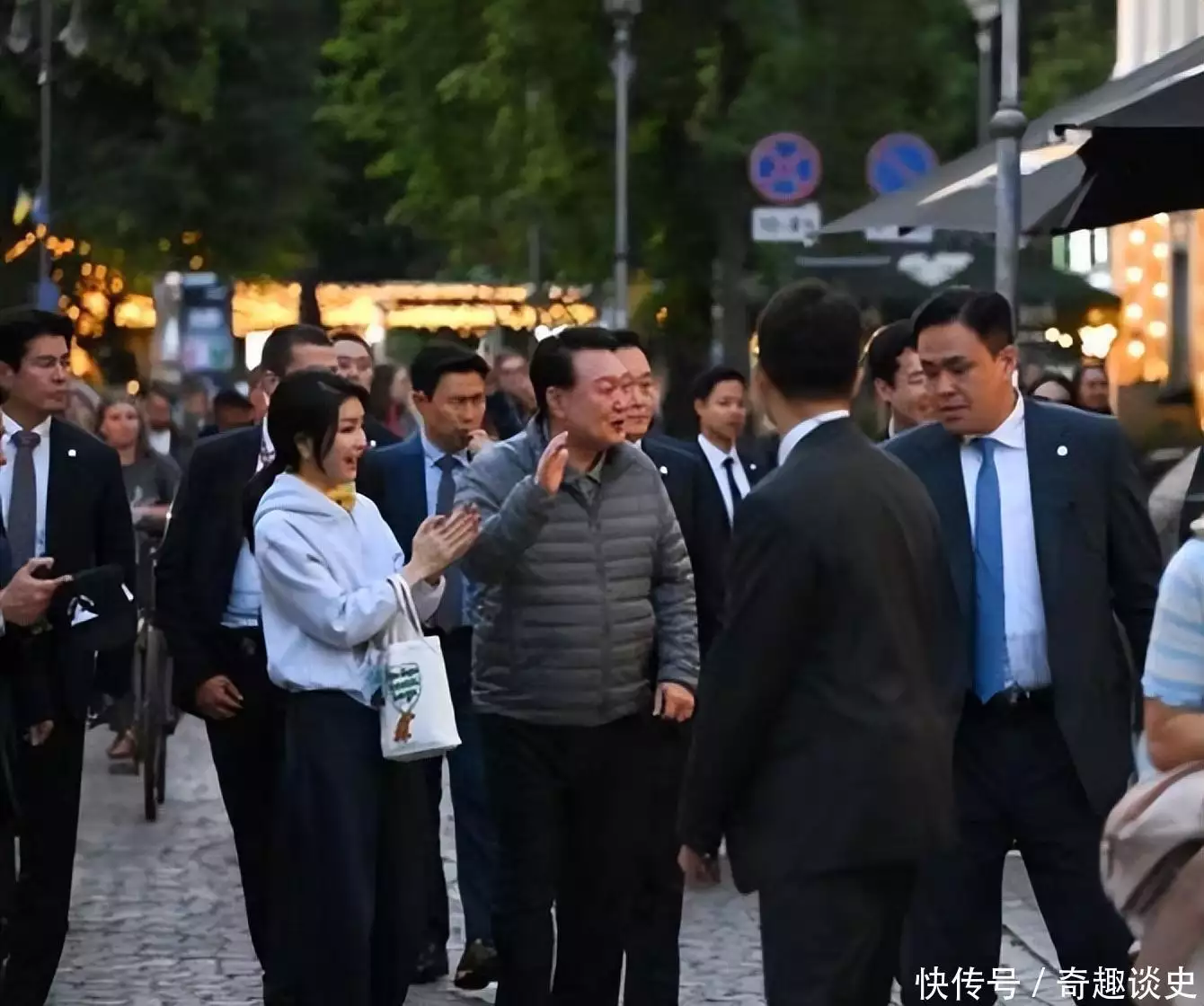 尹锡悦总统这回也很低调,现身立陶宛街头的时候,穿上了一件最普通的羽绒服。如果不是身边保镖成群,很难想象他就是韩国总统,一袭灰色羽绒服跟路人无异。