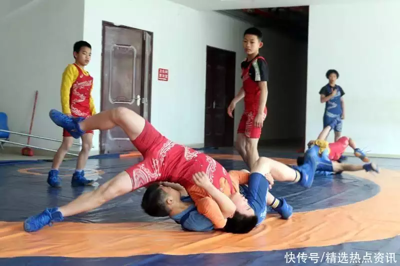 钟山县业余体育学校中国式摔跤队正在进行战术训练