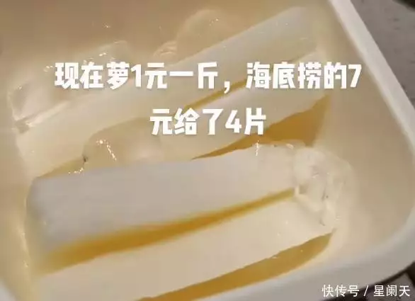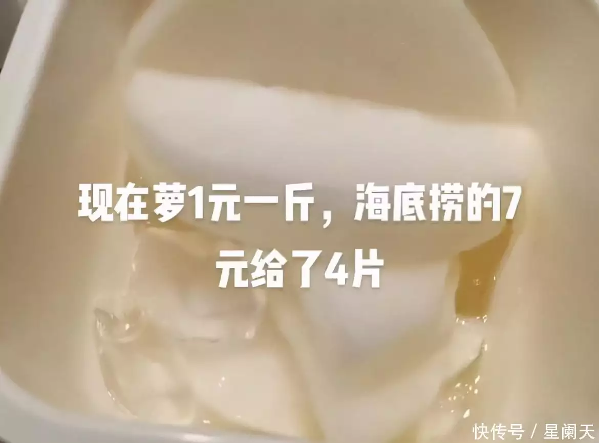 北京一名女子去吃海底捞火锅,在吃饭的过程中却吐槽:现在海底捞不仅菜量太少,就连价钱也贵了很多。这名女子说,现在的萝卜市面价只需要一块钱一斤,海底捞的萝卜不仅一份七块钱,而且里面只放了四片,按理来说七块钱已经能买两个完整的萝卜了,四片是不是有点太少太敷衍了?不仅如此,就连一份十二块钱的山药里面也只有四块。