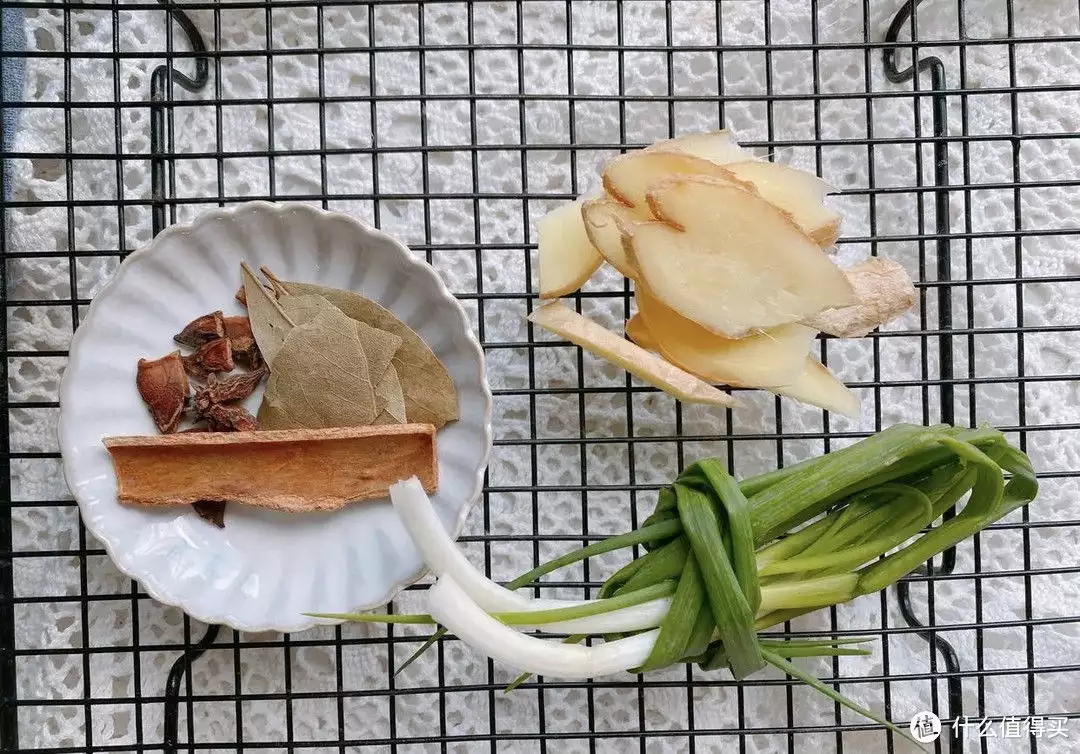 【原材料】猪肉2500g、冰糖200g、生姜、小葱、香叶、桂皮、八角;
