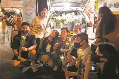 走在滨江中路,记者一路便可看到形形色色的“摆摊卖货车”:有针对吃货群体的“榴莲车”“柠檬茶车”“烤串车”;有针对音乐爱好者的“卡拉OK”车、“卡拉OK”投影以及“全民K歌”小拖车;有针对女士的“饰品箱”“鲜花车”;还有针对老年群体的“太极报名点”“古法按摩点”。记者走访时发现,许多摊贩都是到了晚上6时后才出摊。
