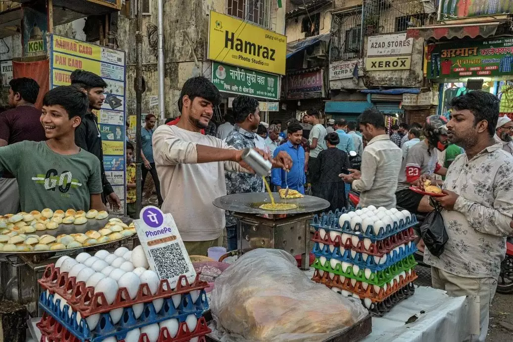 印度孟买的小吃摊摆出二维码,以便顾客用手机支付。图片来源美国《纽约时报》