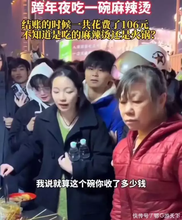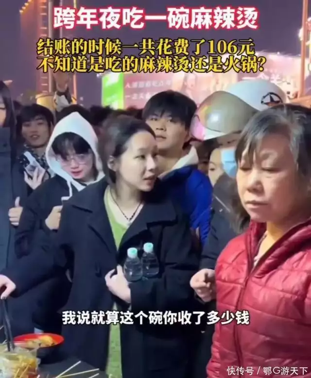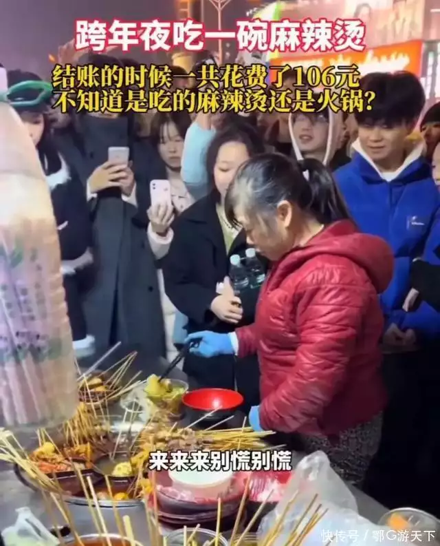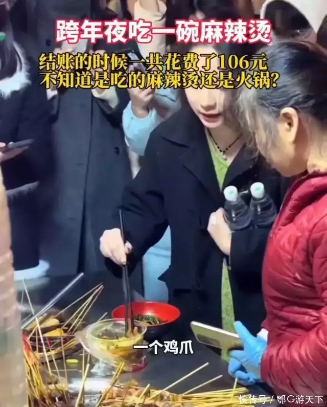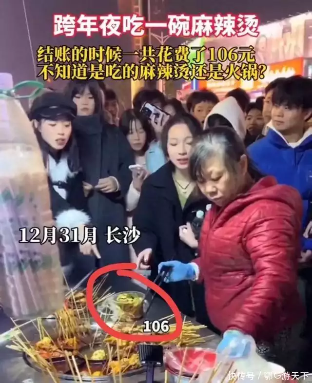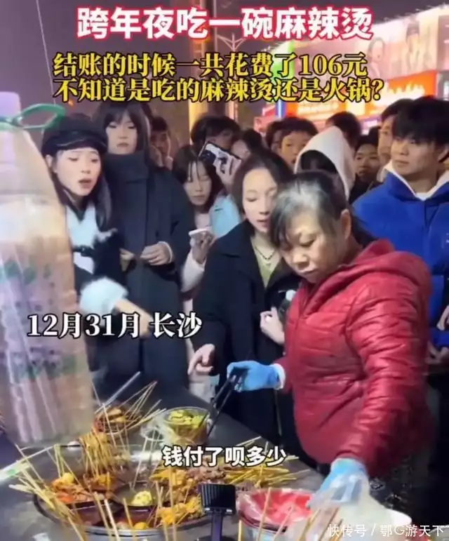 12月31日晚,一位女子在湖南长沙国金附近游玩,路过一处麻辣烫摊位时,突然嘴馋很想吃一碗。