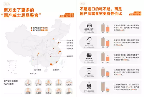报告显示,以市场常规的700ml/瓶的包装为例,国产威士忌均价为242.2元,是同规格进口威士忌价格的五分之一左右。而国产威士忌消费前十的城市中,有9个都是南方城市。