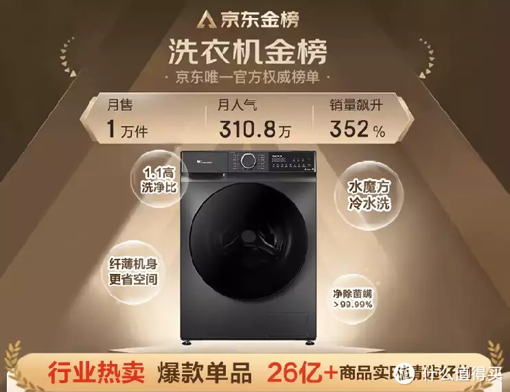 小天鹅水魔方系列定位中端洗衣机,同样主打性价比与全能性,旗下TG100V618T在洗衣与功能性方面出众,单平台销量突破百万。