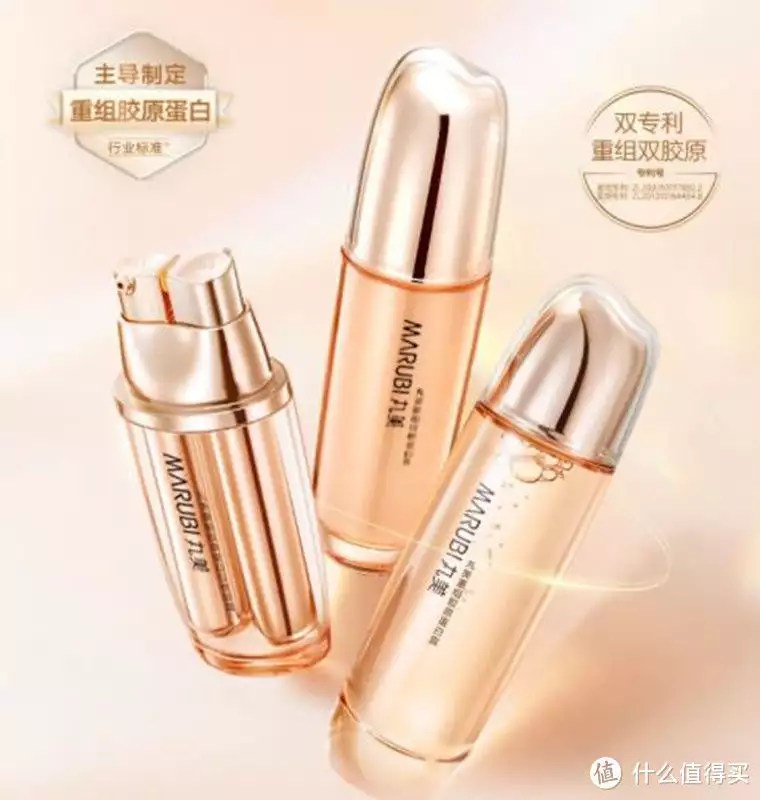 丸美这款护肤套装包括爽肤水、乳液、眼霜3件套,核心亮眼成分是可被人体直接吸收的重组胶原蛋白,成分党应该知道胶原蛋白由于分子较大是没法被皮肤直接吸收的,但重组胶原蛋白是由DNA重组技术制备的,具备优越的组织相容性,不仅可以直接被人体吸收还能参与构建胶原,嘭弹充盈肌肤,有效抗老。因此,重组胶原蛋白也成为继玻色因、胜肽、A醇之后的第四大抗老巨头成分。