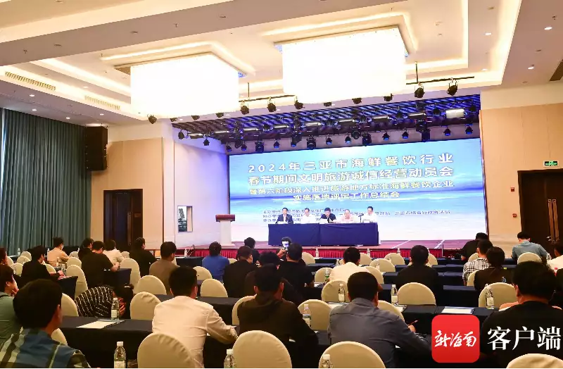 新海南客户端、南海网1月30日消息(记者 沙晓峰)1月29日下午,2024年三亚市海鲜餐饮行业春节期间文明旅游诚信经营动员会暨第六阶段深入推进旅游地方标准海鲜餐饮企业实施落地评定工作总结会在三亚大东海酒店举行,三亚市旅文局、三亚市发改委、三亚市市场监管局及全市海鲜餐饮企业代表、星评员代表、媒体代表100余人出席会议。