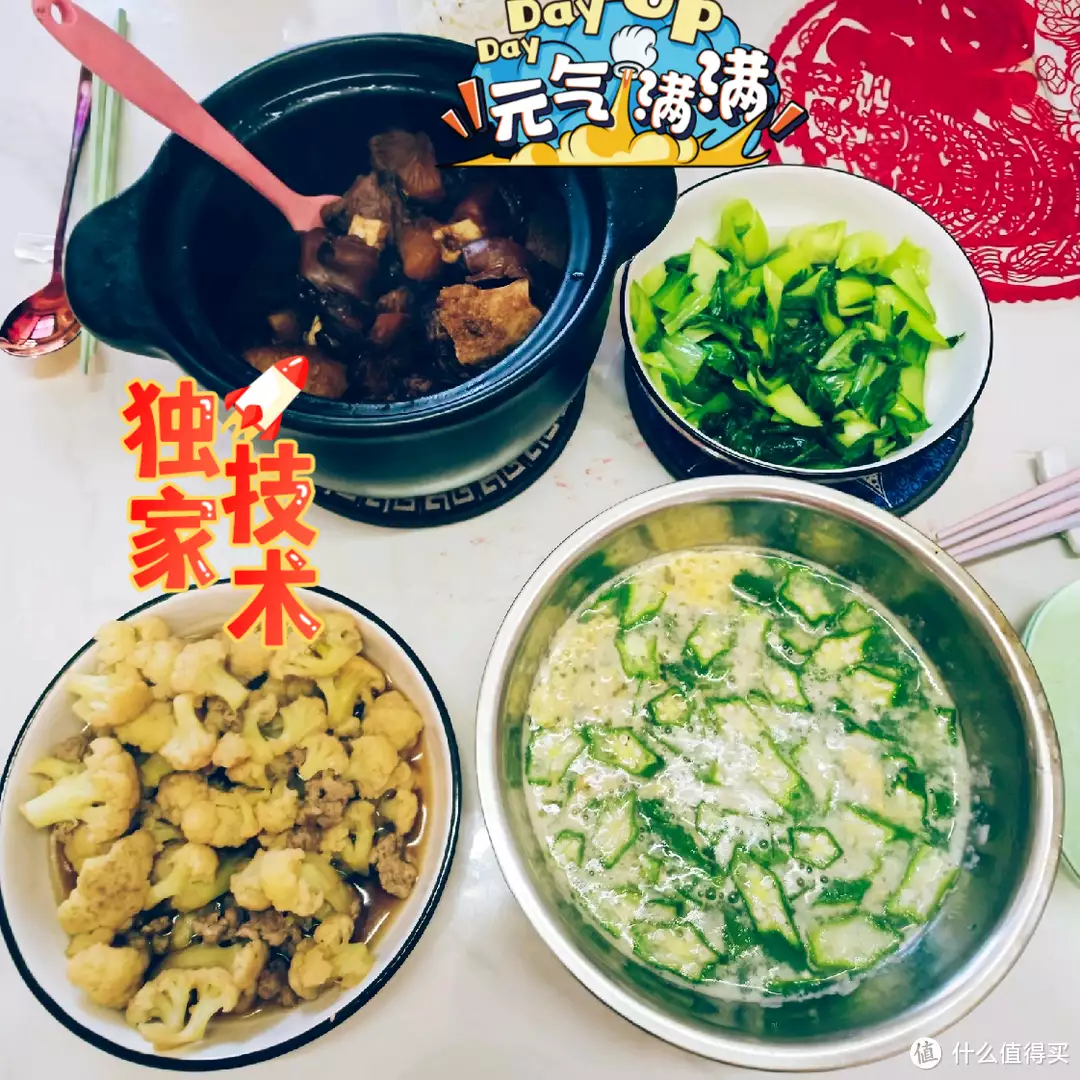 今天吃的是白萝卜炖羊肉,因为有些油腻,所以配了一个秋葵鸭蛋汤,女儿吃后说味道很好,老公说唯一的缺点就是太少了