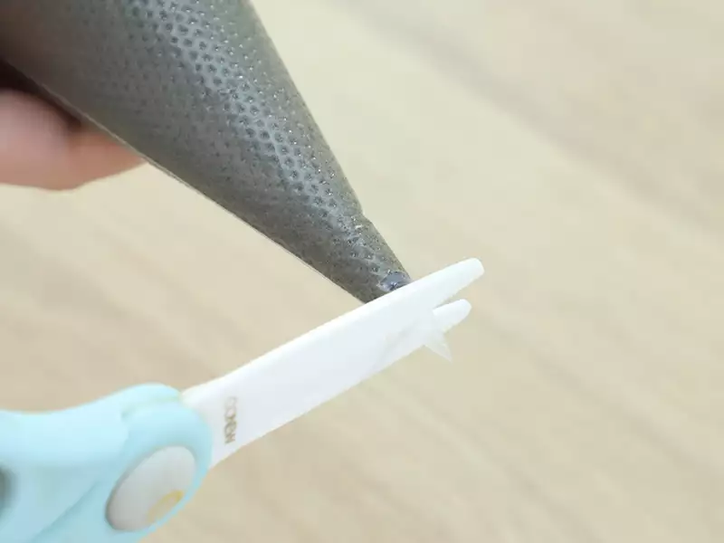 9.搅拌好的面糊装入裱花袋中,剪小口。