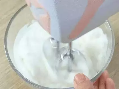 5.蛋清用电动打蛋器打发至提起打蛋头有小尖尖。
