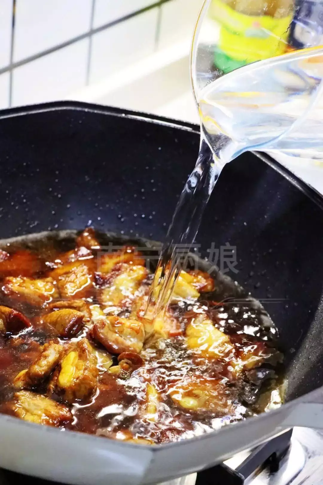 第四步:加入没过食材的纯净水,煮沸锅中汤水,盖上锅盖,转小火煮20分钟,让排骨充分吸收汤汁,变得软烂入味。
