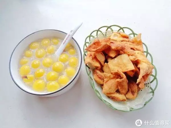炸蕉叶是平时的零食,做早餐真不错,香喷喷的,搭配自己做的醪糟,煮了黄米芝麻汤圆,还加了鸡蛋液一起煮出来,看这金黄金黄的,特别有食欲,有着醪糟的酒香,鸡蛋的鲜美,汤圆的香味糯糯,真是美味好吃。