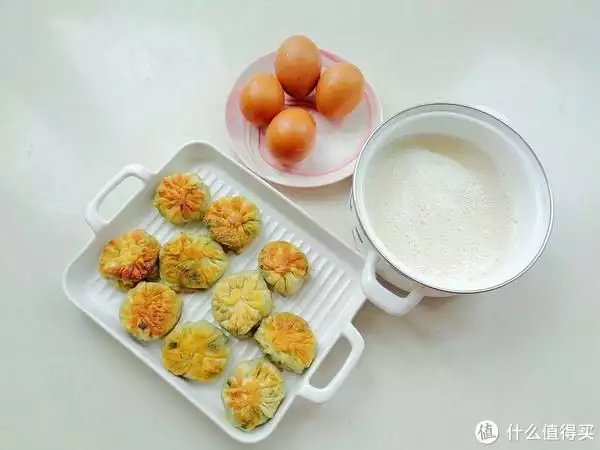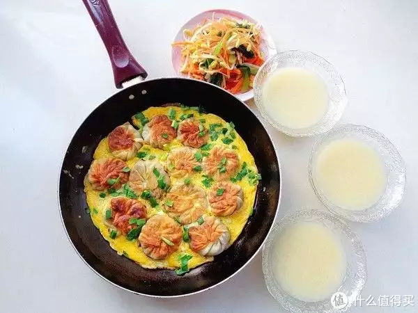 今天的早餐比较简单,鸡蛋是前一天剩下的,早上就做了煎包子,用平底锅煎一煎特别省事,豆浆是预约好的,我和老公的早餐,简单吗?