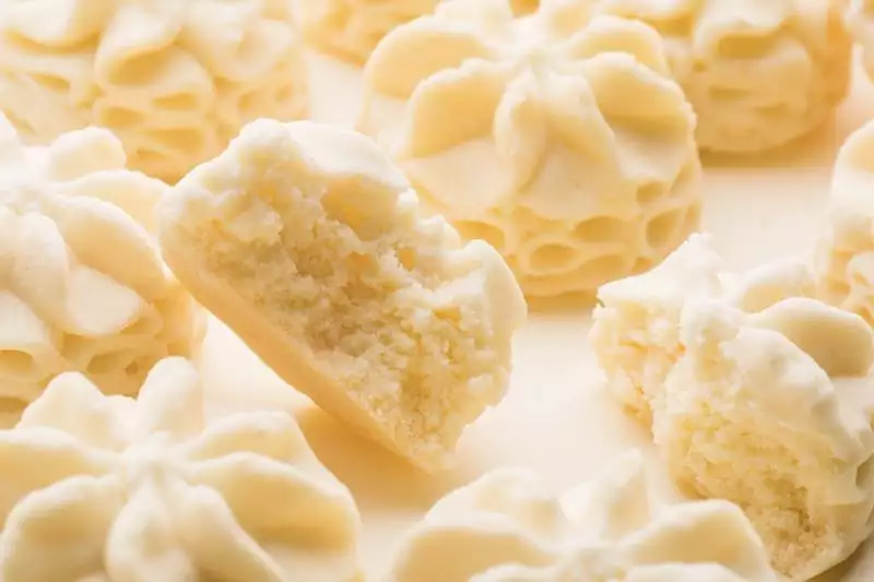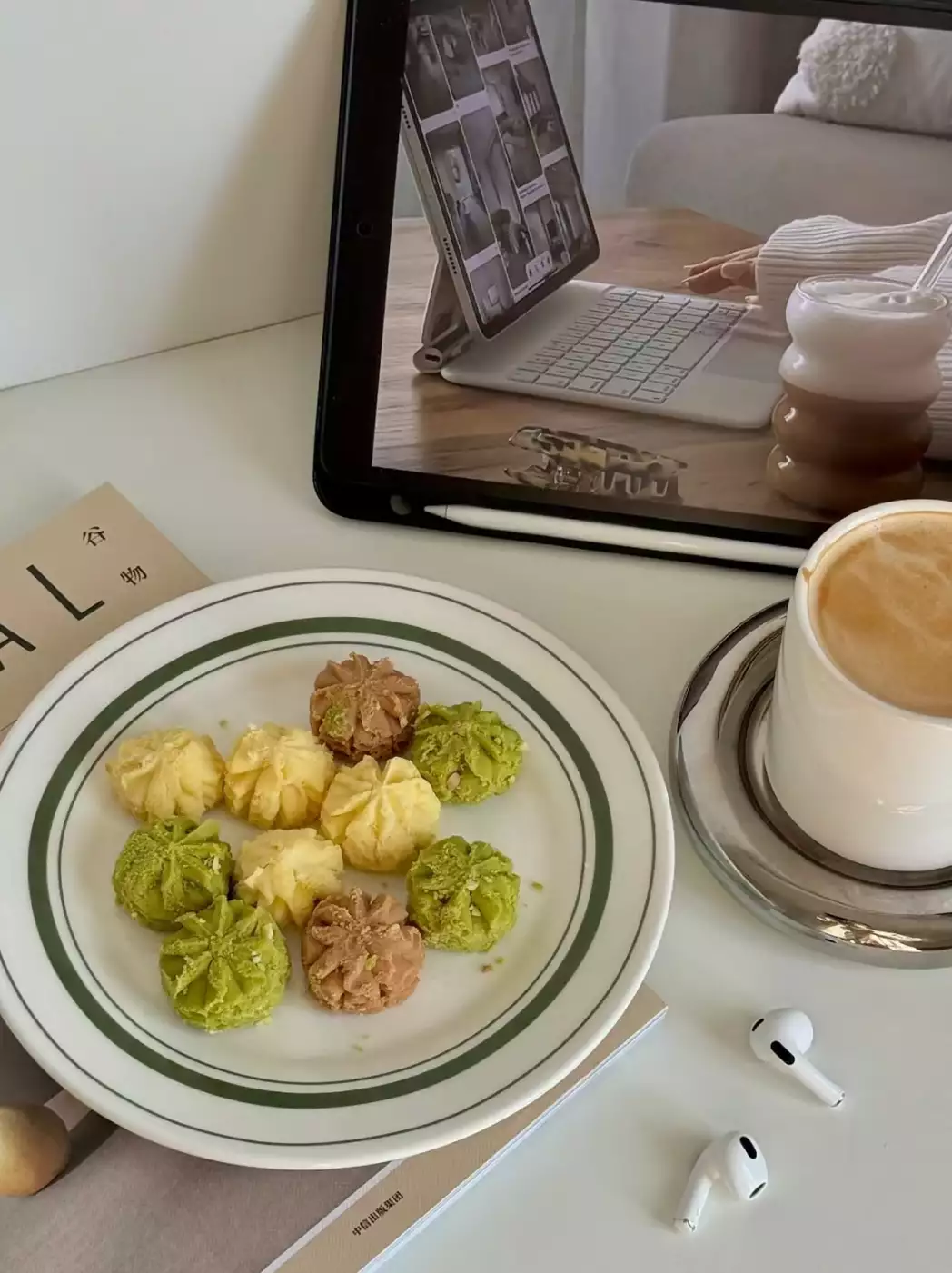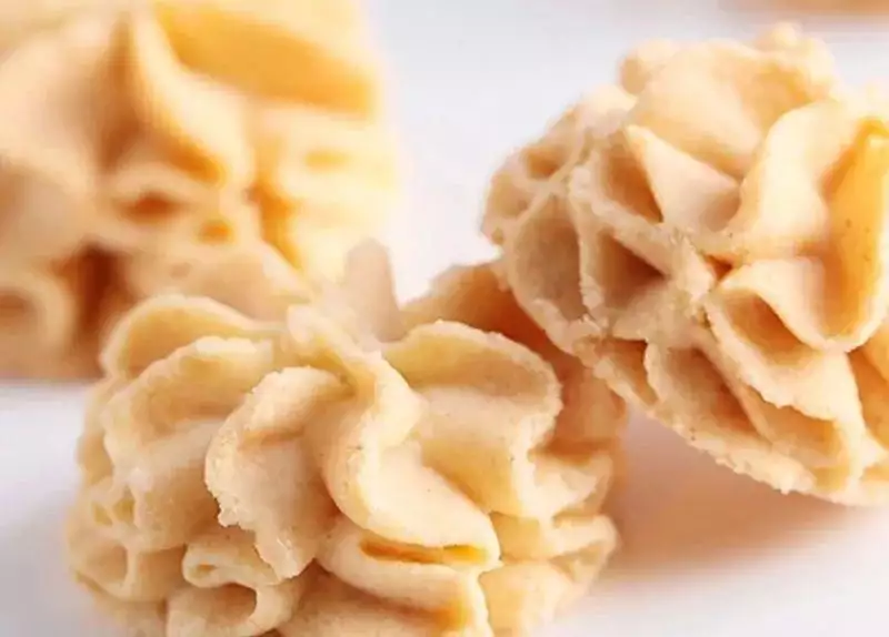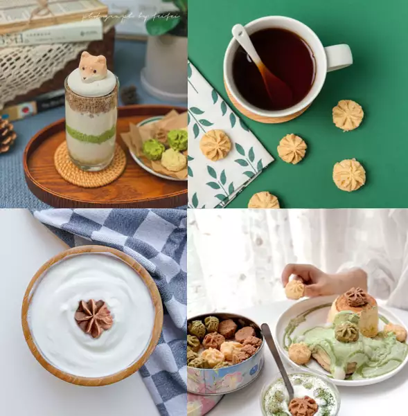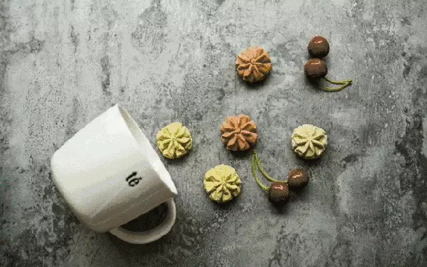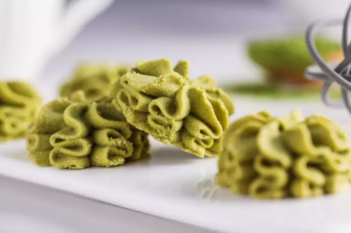 经过捣碎,蒸汽杀青、研磨等工艺,将每一颗曲奇做到颜色翠绿。酥酥的口感中夹杂抹茶的清香,微苦不涩,回味清甜,是很多粉丝的心头好。