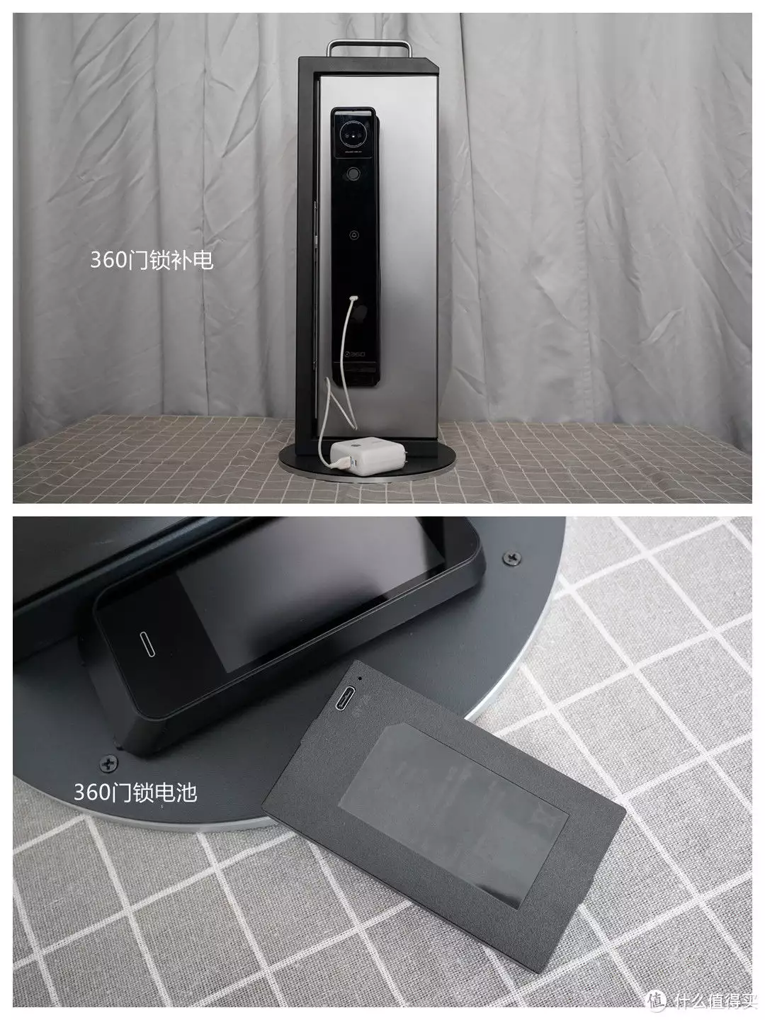 360随机配备有一块5000毫安可拆卸大容量电池,通过USB-C口进行充电,充满需要6小时。如遇门锁临时无电,除了使用物理钥匙开门,可以使用门锁正面下方的USB-C口通过充电宝进行临时补电。