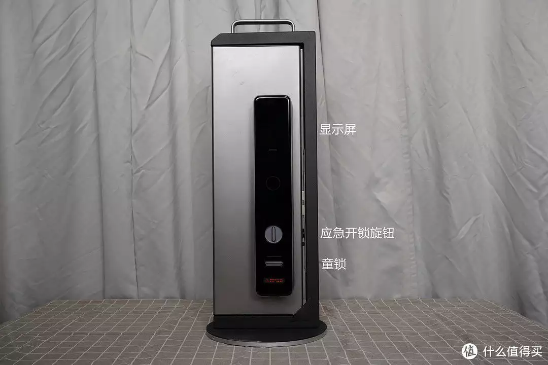 小米内门锁面也采用了黑色玻璃盖板设计,颜值是真的高。内门锁面结构从上到下依次为显示屏、应急开锁旋钮和童锁。小米采用的自动上锁设计,内门锁面也就没有反锁这类操作按键的设计。