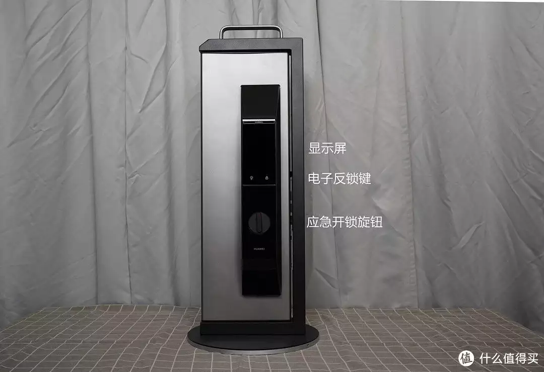 华为内门锁面采用了外门锁面类似设计,也可以看到颇有辨识度的斜面过渡设计。内门锁面结构从上到下依次为显示屏、电子反锁键和应急开锁旋钮。华为内门锁面功能上对比360少一些,不过功能也基本够用。
