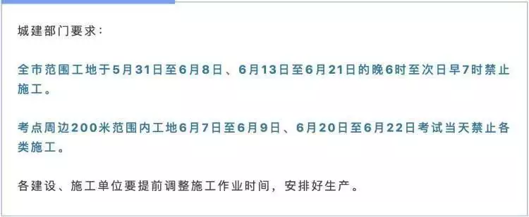 5月31日,武汉开展“静音护考”专项行动,全力做好考试期间夜间施工噪声及商业噪声执法工作。考试期间,对于违规产生噪声的工地将处以10万元顶格处罚。