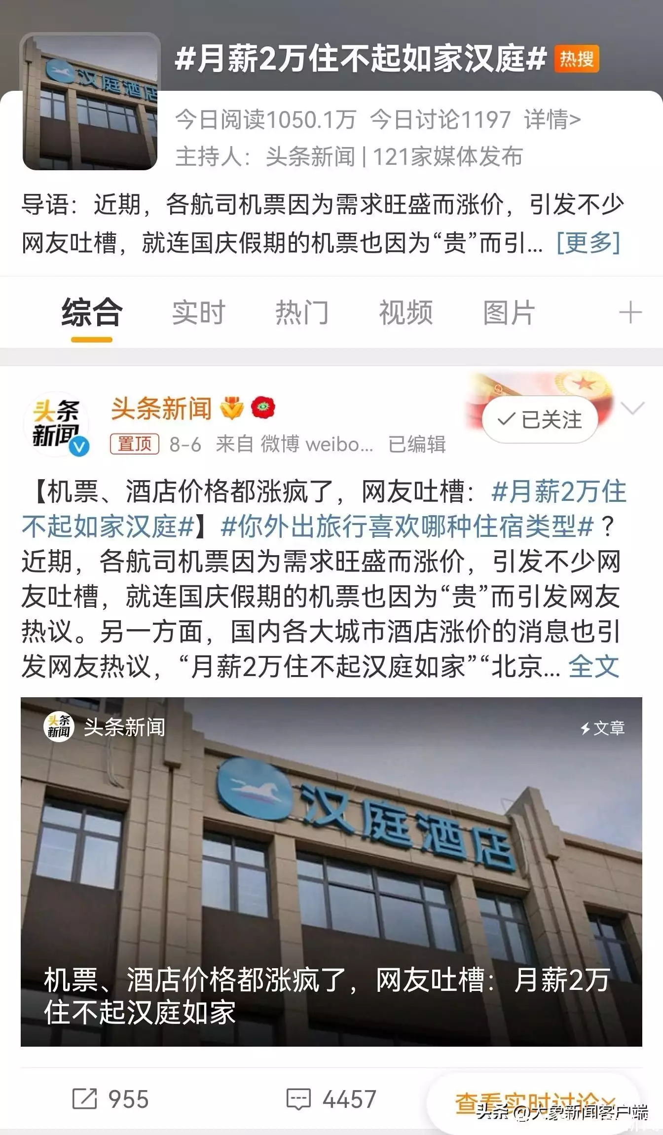 对于“月薪2万住不起如家汉庭”的热搜,华住集团方面回复称,疫情过后,旅游市场正在快速复苏,而酒店行业的供给恢复速度还没有完全同步,供需的不匹配也导致部分热门地区价格波动明显。