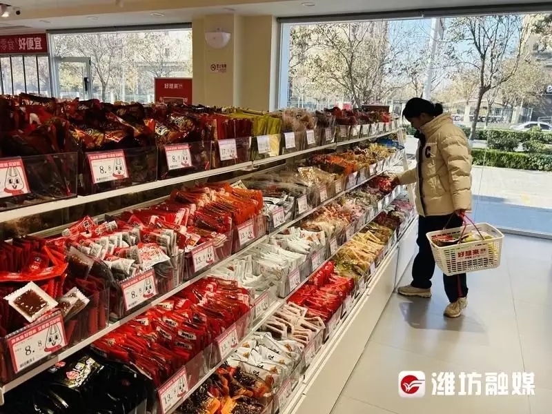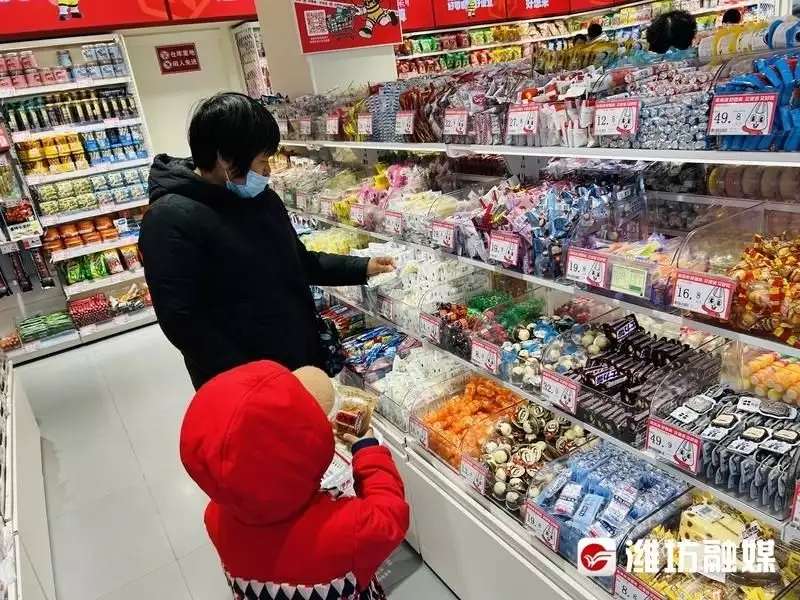 12月3日上午,记者走进位于寒亭区益新街与志远北路交叉口附近的一家好想来零食工厂店,“潍坊,我们好便宜”“会员日88折”……店门口的宣传标语异常醒目,该店甚至将部分饮料的价格制作成宣传牌放置在显眼位置。当天是周日,店内顾客较多,有儿童、年轻人,也有老人。店内的零食货品分门别类地放置在货架上,有饼干、辣条、干果、糖果及各类饮品等,种类非常丰富。与传统超市的零食货架相比,该店除了少部分包装零食外,主要售卖散装品类零食,以小克重、独立包装为主,主打选择多样、称重计费。