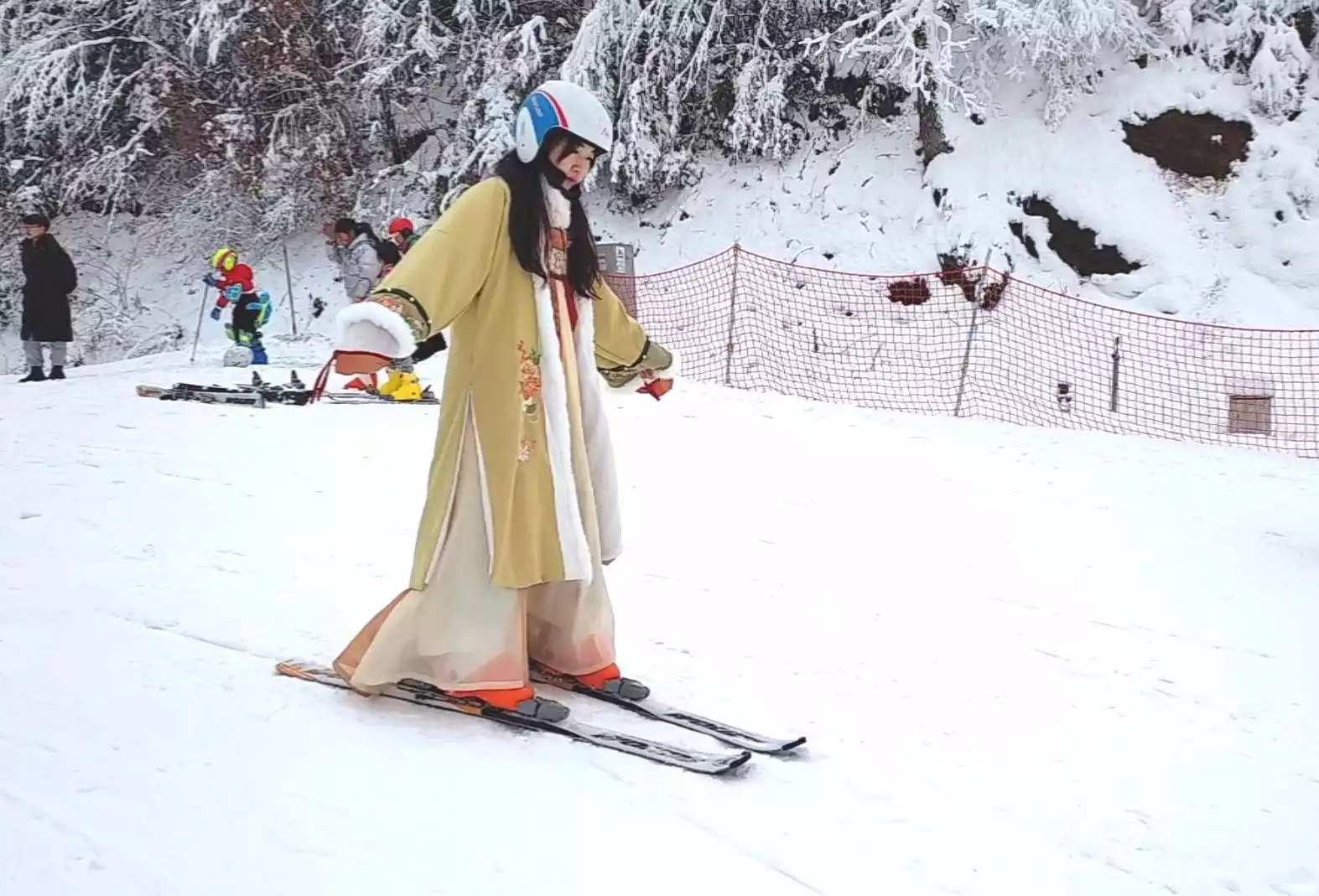 Cosplay滑雪,正在这里流行起来。近日,在石柱土家族自治县冷水镇国际滑雪场,记者看到一些身着汉服的青年女子从雪道上翩然而下,衣袂飘飘,服饰的鲜艳与雪地的洁白相映成趣。其中一位姑娘叫马佳,她说:“平时喜欢穿汉服,这次约了不少喜欢穿汉服的小伙伴一起来,就是想体验一下古装滑雪的奇妙感觉。”
