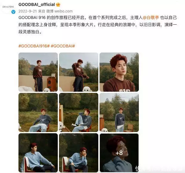 以白敬亭的GOODBAI为例,这家成立于2021年的品牌,由白敬亭创建,好友、也是国内知名独立设计师上官喆担任创意及设计总监。