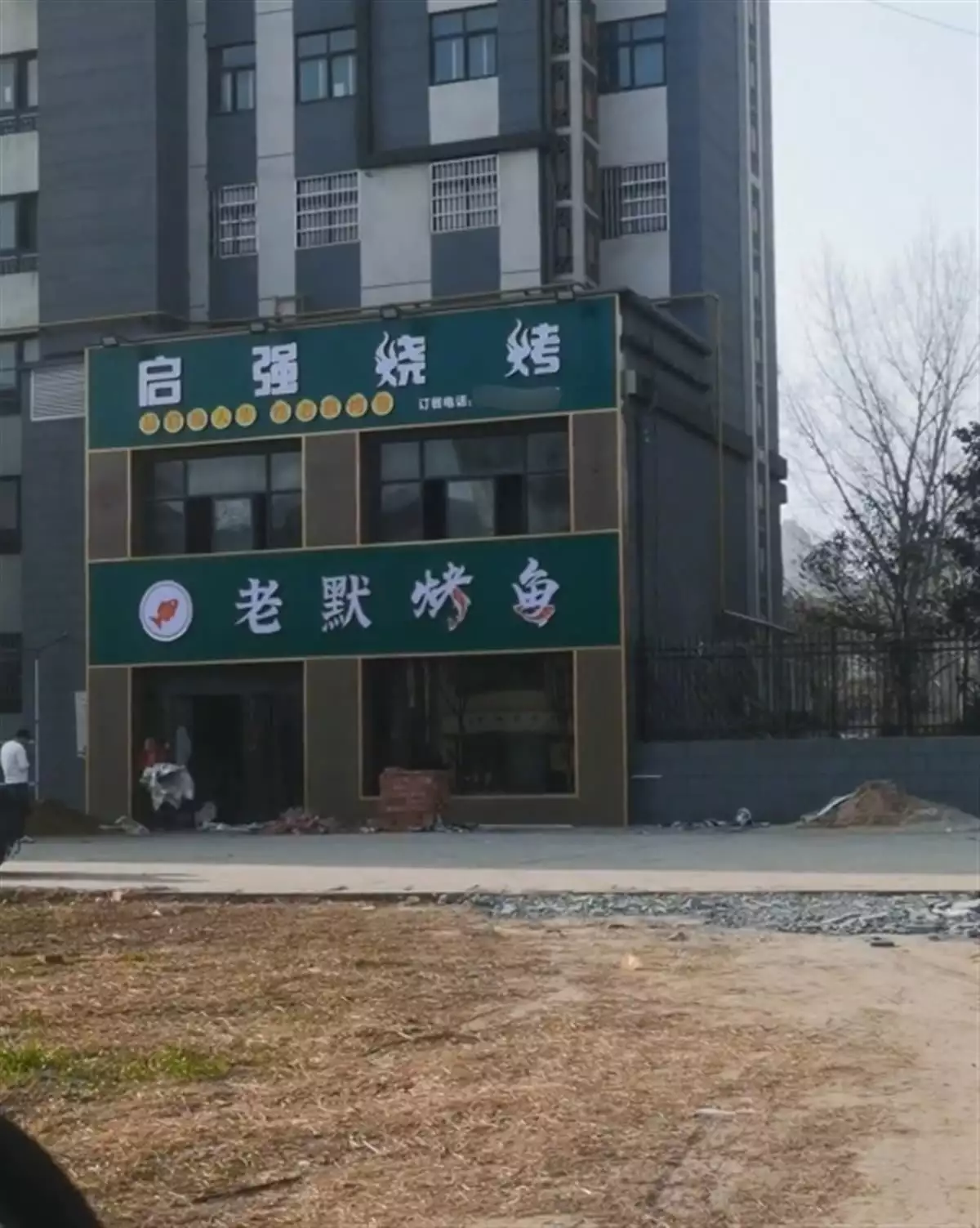 河南驻马店有一家两层楼的餐饮店即将开张,老板和伙计们正做着开业前的最后准备。“老默烤鱼”“启强烧烤”——门外的大型招牌格外显眼。店名之外,老板还不忘加上一句宣传语“品启强人生,吃老默烤鱼”。