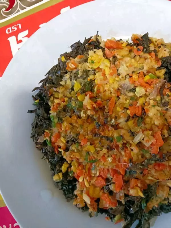 用料胡萝卜、白菜洋葱 适量玉米粒、花生碎 适量香葱末 适量生抽 适量调味海盐黑胡椒粉 适量黑芝麻、鸡粉白糖 适量免洗紫菜饼 一块做法步骤 < style="text-align: left; margin-bottom: 10px;">