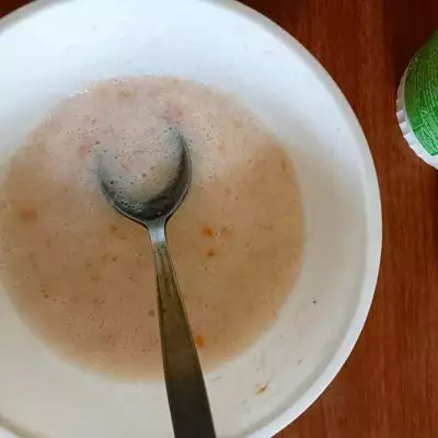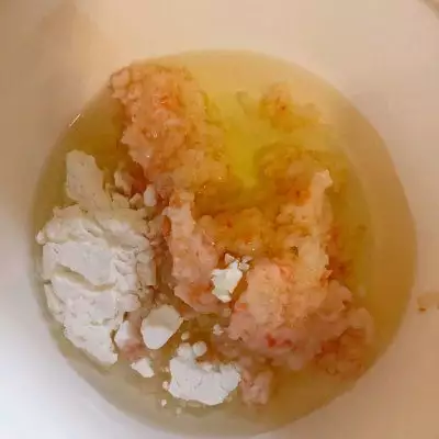 3、虾泥中加入蛋清盐和玉米淀粉后搅拌均匀。