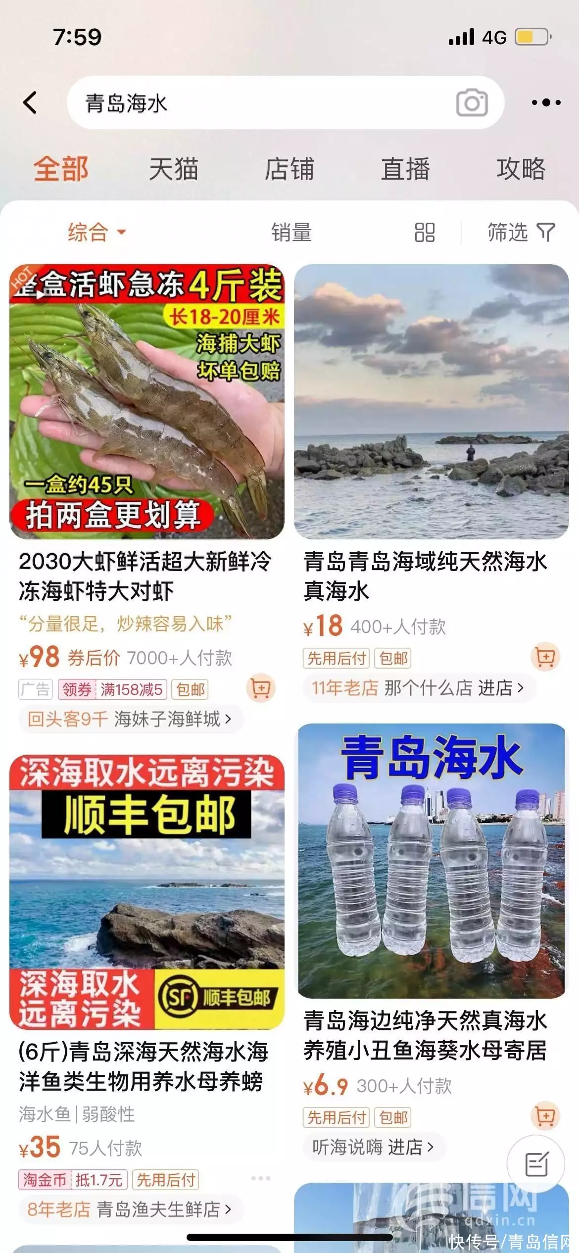 据媒体报道,近期,在一些网上购物平台和二手交易平台上,“贩卖海水”在网络上掀起了一阵热潮,卖家打出“养殖海洋生物用”“送不了大海可以送海水给心爱的人”“无污染纯天然海水”等广告语。在某电商平台,一瓶海水均价29元左右,顺丰包邮保真保正,价格最高者甚至可卖到1000元。这一现象引起了众多消费者的关注,也引发网友热议。