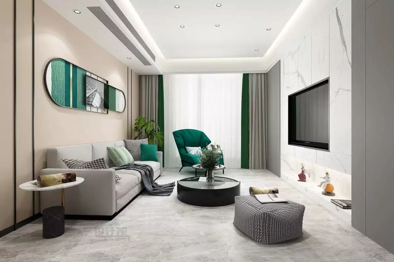 在效果图上,你根本就看不出来方案里面用的是什么材料,尤其是背景墙上的造型设计,还有一些比较前卫的设计,比如金属踢脚线、柔光砖、金属装饰条等等,看图片很难看到这些细节材质的。
