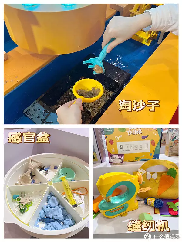 可以踩自行车控制的汽车轨道,淘金沙子,木质烧烤炉,水果摊,小厨房这些都可以现场体验,还有考古玩具,一玩都停不下来啦