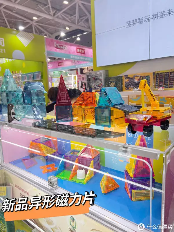 看到了很多他家的新品磁力片,有好多异形磁力片,各类动物生动有趣,传统彩窗轨道管道的也很经典耐玩