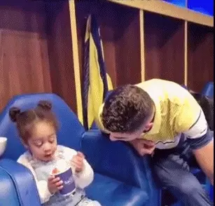 左后卫科南,带着女儿艾玛来到更衣室,C罗与小艾玛聊了起来。
