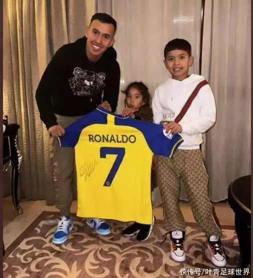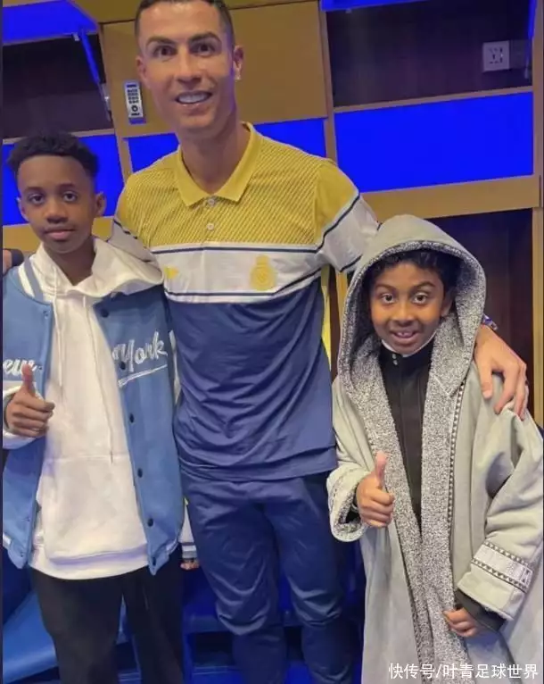 卡库还带着两个孩子,得到一件C罗签名的利雅得胜利7号球衣。“真是疯狂”,卡库感叹。